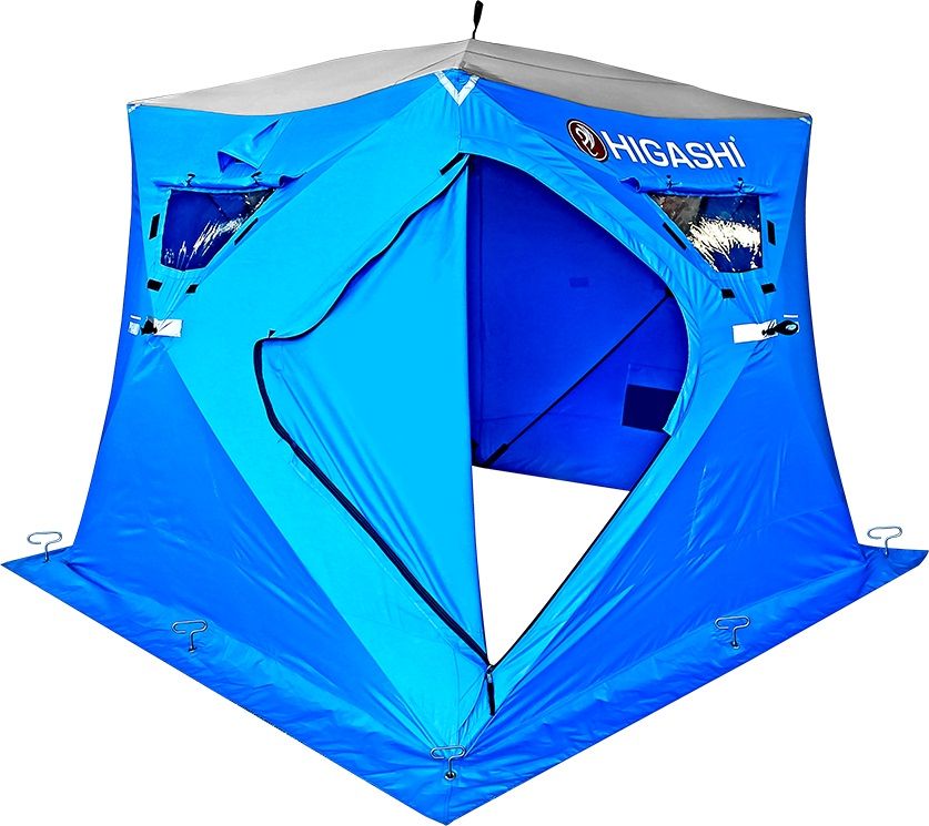 Зимняя палатка Higashi Pyramid отличное решение для дружеских совместных выездов на подледную рыбалку или охоту. Комфортна в использовании. Даже в сборе, вы без труда сможете перемещать ее с места на место. Модель кубовидная, сборка и разборка занимает всего 1,5 минуты. Дополнительно с внешней стороны предусмотрены светоотражатели. Зимняя палатка Higashi Pyramid предназначена для защиты от сильных порывов ветра, северной вьюги и стужи. Палатка выполнена из ткани Nylon 300D. Минимальная температура эксплуатации до - 25°C.