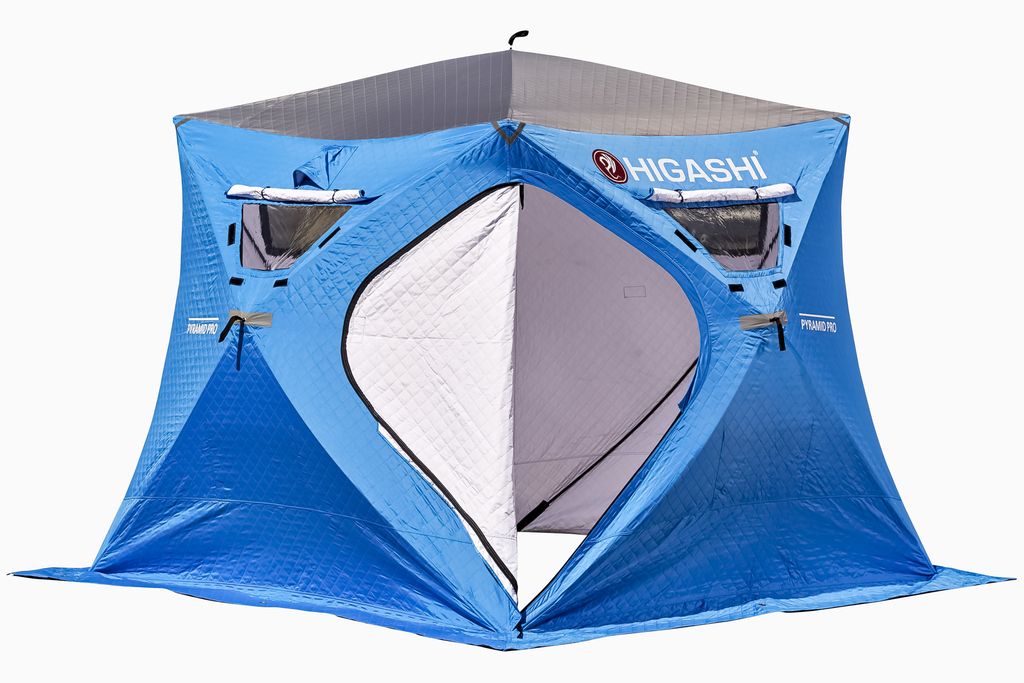 Зимняя палатка Higashi Pyramid Pro это утепленная версия палатки Higashi Pyramid. Комфортна в использовании. Даже в сборе, вы без труда сможете перемещать ее с места на место. Модель кубовидная, сборка и разборка занимает всего 1,5 минуты. Дополнительно с внешней стороны предусмотрены светоотражатели. Зимняя палатка Higashi Pyramid Pro предназначена для защиты от сильных порывов ветра, северной вьюги и стужи. Палатка выполнена из нескольких слоев ткани Nylon 300D и утепленной прослойки «Thermal». Минимальная температура эксплуатации до - 35°C.