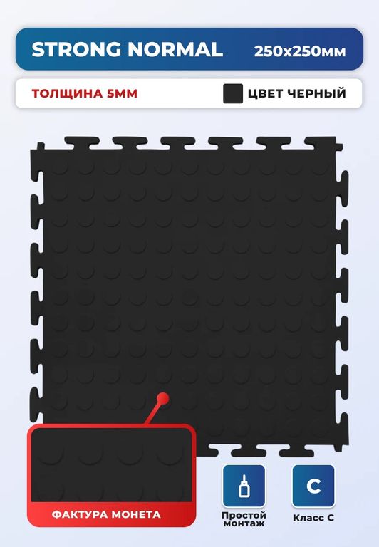 Модульная плитка ПВХ для пола Strong Normal Black (1м²)