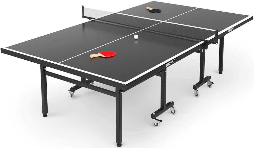 Стол для настольного тенниса UNIX Line всепогодный разработан специально для использования на площадках под открытым небом. Теннисный стол состоит из двух независимых половинок с технологией складывания Compact. Столешница всепогодного стола UNIX Line изготовлена из SMС панели с антибликовым покрытием и выдерживает многочисленные нагрузки, мм обладает хорошей устойчивостью к ударам, воздействию окружающей среды, влаге и температурным перепадам. Она не является горючим материалом, и за счет высокой плотности и толщины столешницы (14 мм) обеспечивает великолепный отскок мяча во время игры. Опоры теннисного стола оборудованы компенсаторами неровности. Для комфортного перемещения теннисный стол имеет 8 прорезиненных колес. Сетка из нейлона с надежными фиксаторами, а также набор для игры в настольный теннис: 2 ракетки, 3 шарика в сумке, поставляются в комплекте со столом.