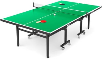 Стол для настольного тенниса UNIX Line всепогодный разработан специально для использования на площадках под открытым небом. Теннисный стол состоит из двух независимых половинок с технологией складывания Compact. Столешница всепогодного стола UNIX Line изготовлена из SMС панели с антибликовым покрытием и выдерживает многочисленные нагрузки, мм обладает хорошей устойчивостью к ударам, воздействию окружающей среды, влаге и температурным перепадам. Она не является горючим материалом, и за счет высокой плотности и толщины столешницы (14 мм) обеспечивает великолепный отскок мяча во время игры. Опоры теннисного стола оборудованы компенсаторами неровности. Для комфортного перемещения теннисный стол имеет 8 прорезиненных колес. Сетка из нейлона с надежными фиксаторами, а также набор для игры в настольный теннис: 2 ракетки, 3 шарика в сумке, поставляются в комплекте со столом.